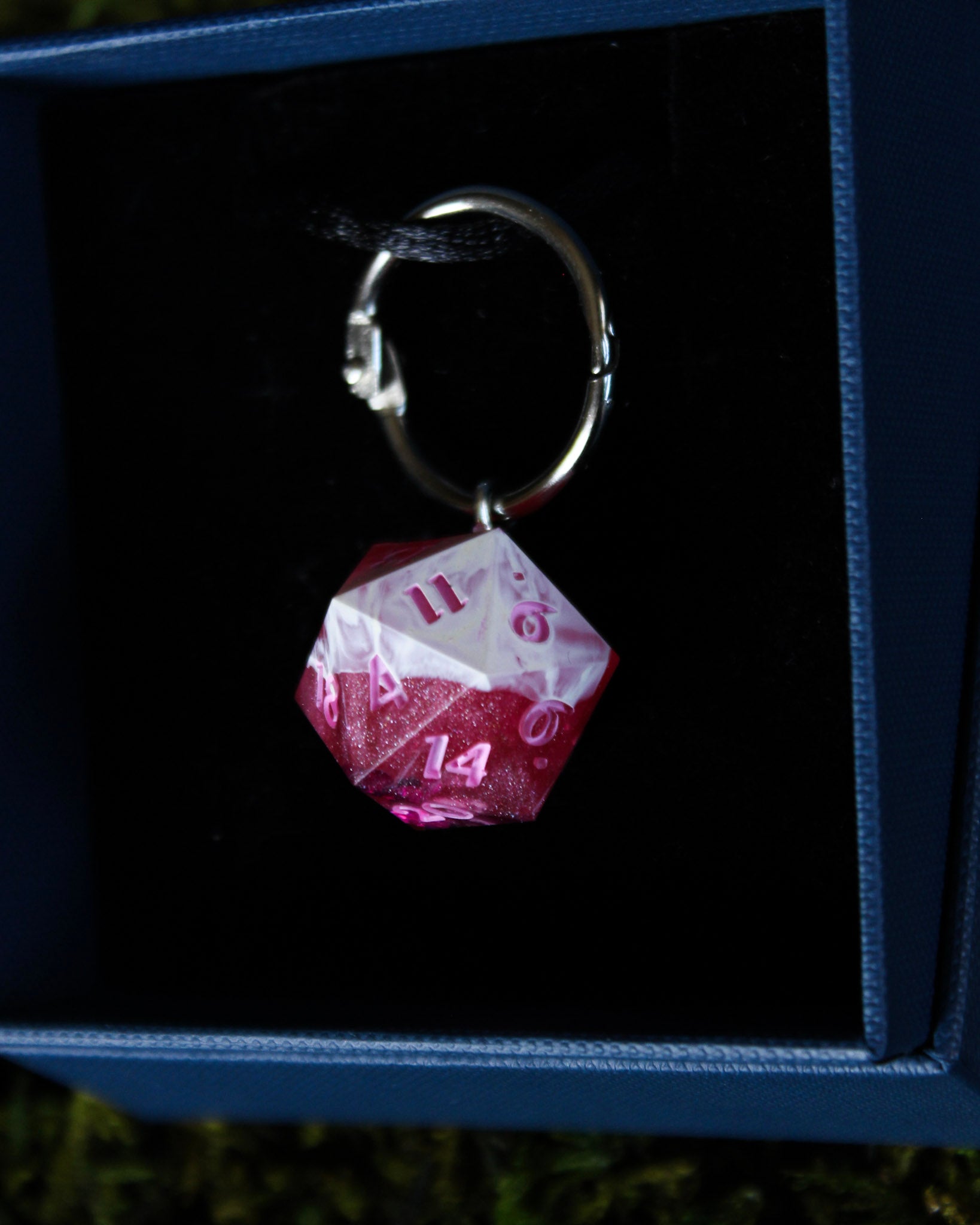 These double as a great key chain so you'll never be caught without a stitch marker. Plus, the shard d6's and d4's still function as dice (though probably not super balanced)!