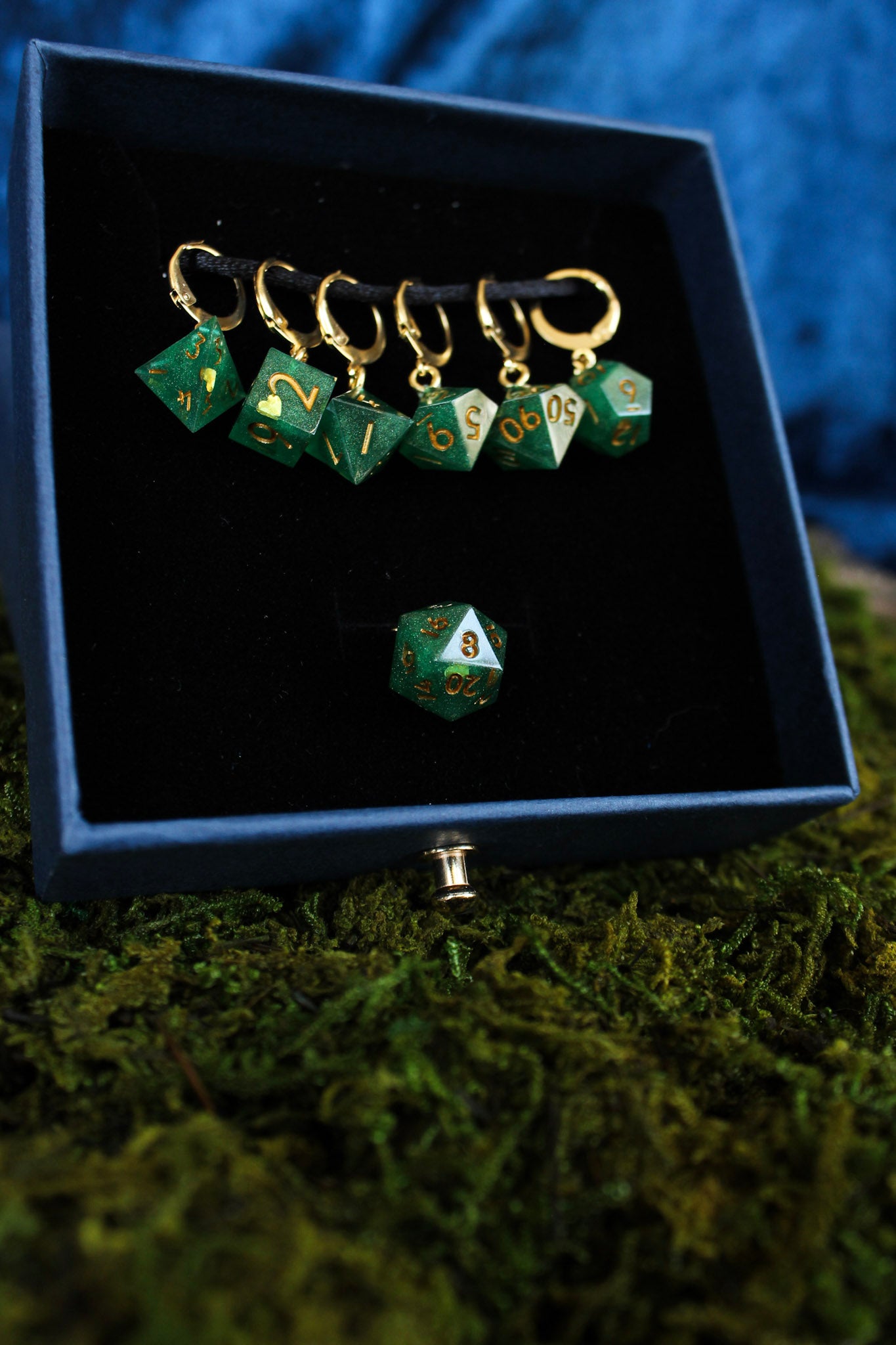 I hand pour each set in epoxy resin using a pressure pot and carefully setting the loop in before it cures for maximum stay power - meaning these are not roll-able dice.