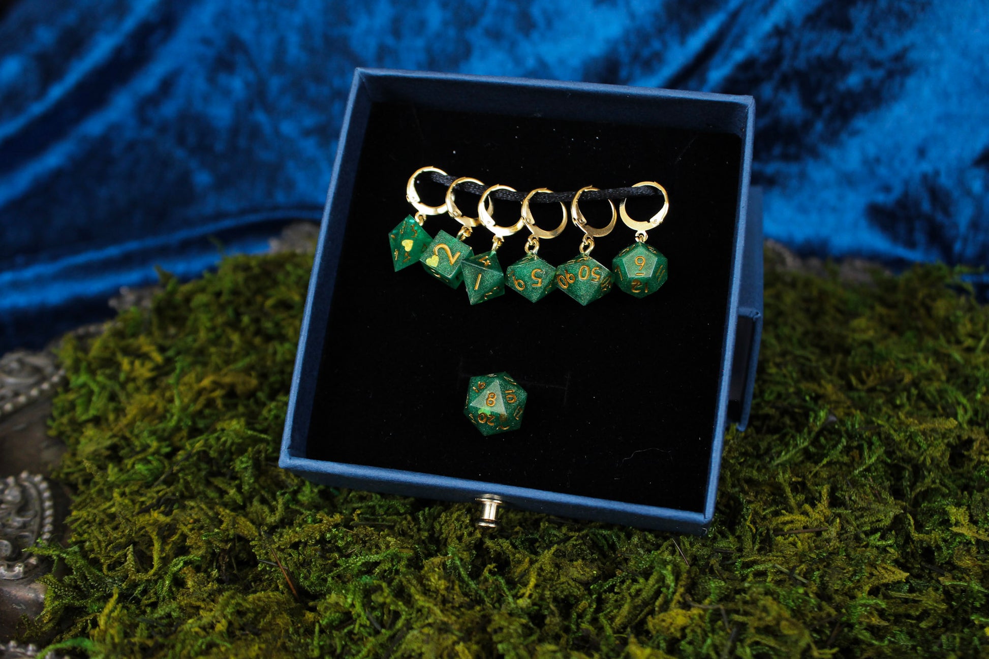 Green of Hearts Dice Stitch Markers 7 Piece Set RPG