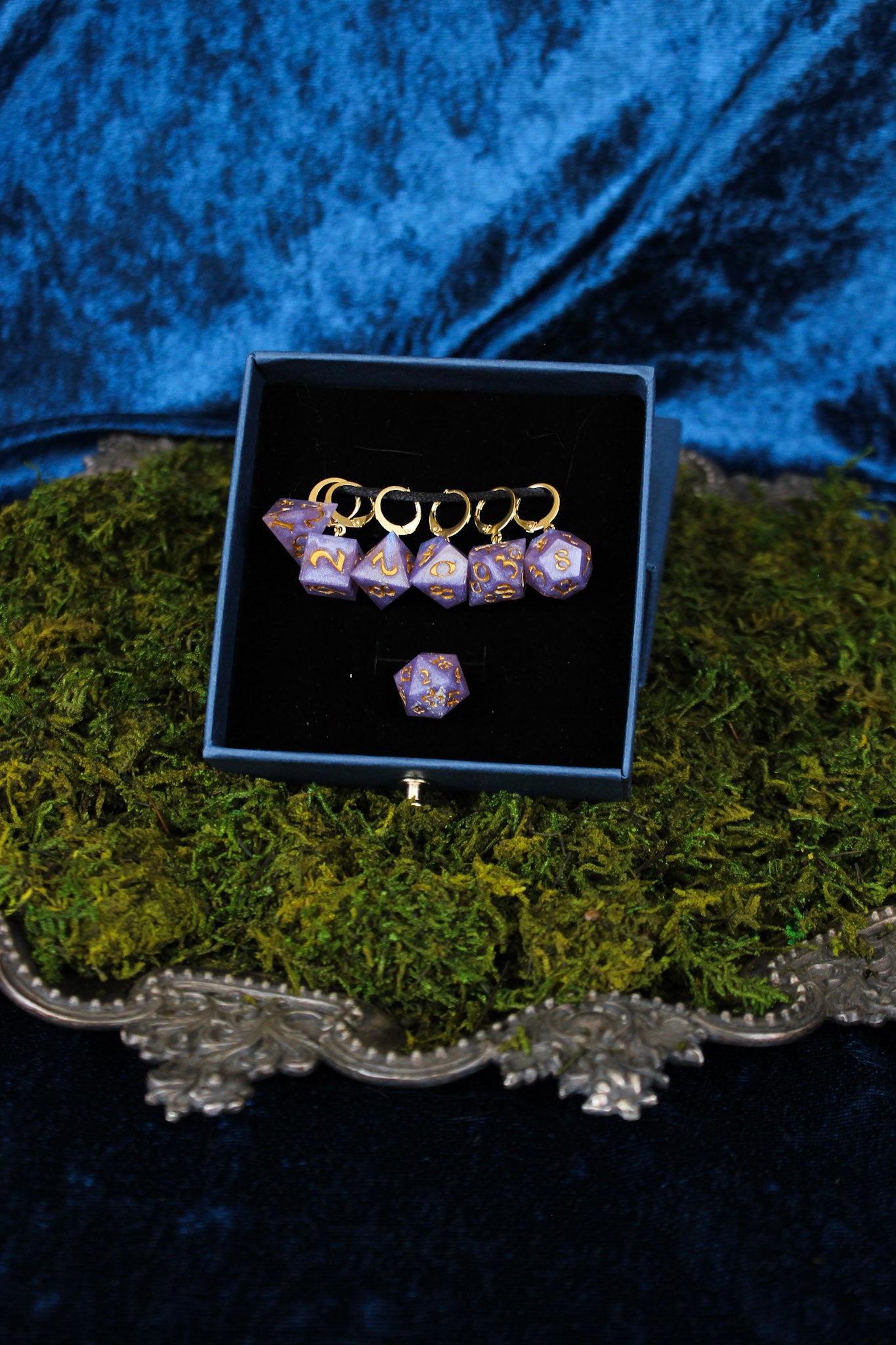 I hand pour each set in epoxy resin using a pressure pot and carefully setting the loop in before it cures for maximum stay power - meaning these are not roll-able dice.